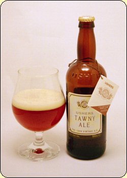 and English Target Hops. Serving Suggestion: Great with English cheeses and savoury dishes. Serving Temperature: Serve at 10-12°C. Tasting Notes: Tawny Ale is full bodied with complex flavours and rich hoppy aromas complemented by a subtle bitter sweetness. 1999 Vintage: Barley crop excellent and we were able to secure the best of the variety. Slovenian and UK Hops were of a very good standard. The Ushers Vintages Ales Collection is a range of three bottled ales brewed to perfection by the Ushers brewmaster with all the care and skill of a winemaker.By using the very best malted barley and hops from each season's harvest, we hope to create uniqueness in each year's brew. The date is therefore added to the label so that you will be able to recognise the qualities of each year.The three Vintage Ales in the collection are White, Tawny and Ruby and they bridge the gap between traditional ales and wine, having been created to complement a wide range of food at home. Also, like wines, they are a delight to drink on their own. | ||