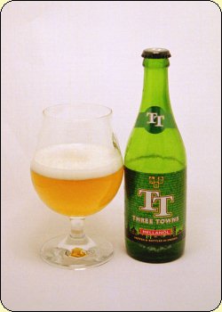 | Flasktext: TT-THREE TOWNS har sedan 1955 uppskattats för sin rena, klassiska smak. Hemligheten är ett torrt och extra friskt ljust öl, bryggt med en väl balanserad styrka. Ta en TT när du vill ha ett svalkande och riktigt gott öl! Vi ses. | ||