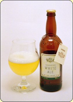 Barley, Fuggle and English Target hops. Serving Suggestions: Goes well with all foods, particularly white meats and poultry as well as lighter, spicier foods. Serving Temperature: Serve at 5-6°C. Tasting Notes: A unique white ale achieved by using very Pale Malts. White Ale is slightly sharp and vinous with light, refreshing flavours. There is an elegant hoppiness to complement the subtle malty taste. 1998 Vintage: Barley crop above average and we were able to secure the best of the variety. Hops were of a very good standard. The Ushers Vintages Ales Collection is a range of three bottled ales brewed to perfection by the Ushers brewmaster with all the care and skill of a winemaker.By using the very best malted barley and hops from each season's harvest, we hope to create uniqueness in each year's brew. The date is therefore added to the label so that you will be able to recognise the qualities of each year.The three Vintage Ales in the collection are White, Tawny and Ruby and they bridge the gap between traditional ales and wine, having been created to complement a wide range of food at home. Also, like wines, they are a delight to drink on their own. | ||
